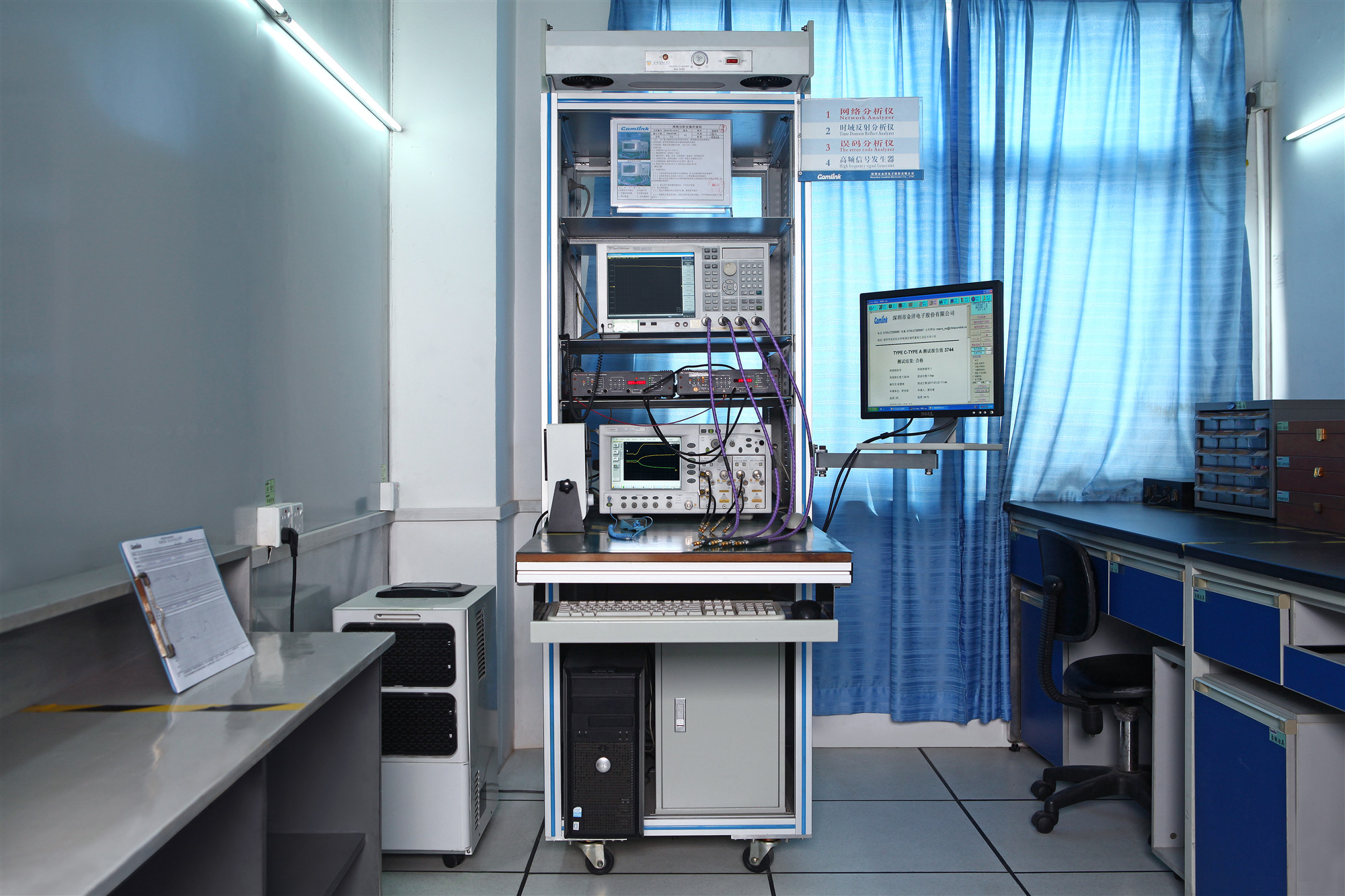 仪器型号:E5071C网分+Agilent86100C+54754A*2 TDR 仪器品牌:安捷伦(美国) 测试项目:衰减、驻波比、回损、串音\、特性阻抗、延迟差、串音、眼图等 最大量程:20GHz &四通道