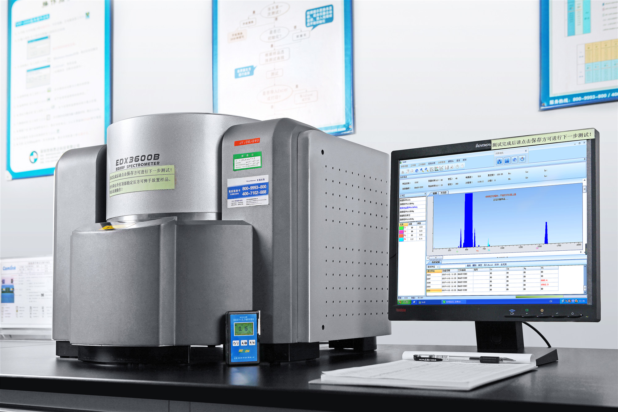 仪器型号:EDX3600B 仪器品牌:天瑞(江苏) 测试项目:快速定性Br、Cr、Cd、Hg、Cl、As、Sb等 测试标准:IEC62321